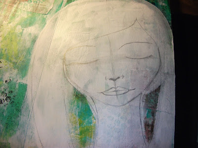 I have been playing with my large altered book, nine double page spreads with a face on each, well nearly. It is coming along nicely.